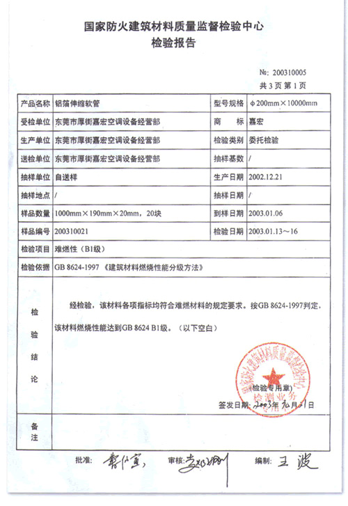 AF Aluminum Flexible Duct Test Report Hits:7100 Entry time:2011/1/7