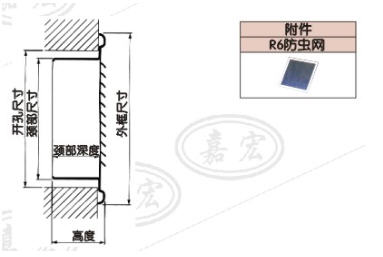 特性 風(fēng)口內(nèi)有百葉片,頸部附有彈簧倒勾片,安裝方便。適用于廁所,廚房及之排氣。
