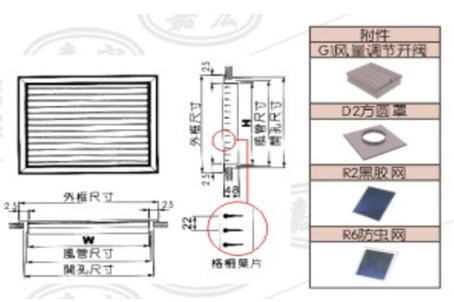 特性  垂直葉片與水平葉片交錯(cuò)組合而成,葉片可自行調(diào)整,如附加風(fēng)量調(diào)整開關(guān),可調(diào)整風(fēng)量。