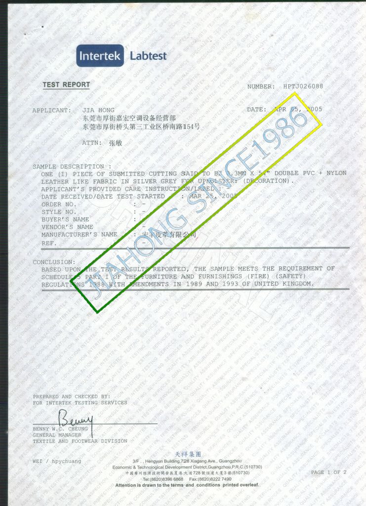 • 耐高溫矽膠玻布風(fēng)管檢驗報告